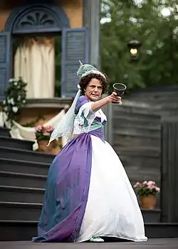 Christiane von Poelnitz played Beatrice in Viel Lärm um Nichts (German for Much Ado About Nothing) at the Burgtheater in Vienna in 2006.[32] Von Poelnitz's Beatrice was criticized for being unable to keep up with the men in the production. A critic described the show as a "männerverliebtes Männerspiel" (a men's game of men in love).[33] In 2013, Eva Meckbach played Beatrice in the Schaubühne production of Viel Lärm um Nichts.[34] In this production, directed by Marius von Mayenburg, both Beatrice and Benedick sang a lot.[35]