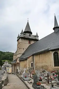 is registered as an historical monument.[15] is It is characterized by a bell tower with four corbelled turrets. The Church contains several items that are registered as historical objects: