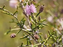 Beaufortia micrantha, commonly known as small-leaved beaufortia[2] or little bottlebrush,[3] is a species of flowering plant in the myrtle family, Myrtaceae and is endemic to the southwest of Western Australia. It is a compact shrub with tiny leaves pressed against the stems and profuse heads of purple or pinkish-coloured flowers.