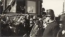 Development from the first decade of the twentieth century of the area between Sandringham and Black Rock prompted formation of a public association to lobby for extension of the Sandringham railway that gained Parliamentary support in 1910, though it was vetoed over the high cost of land resumptions. In both 1913 and 1914, proposals were put forward for an electric tramway from Sandringham to Black Rock but using an inland route to preserve the visual amenity of the coastal reserves.[40] In November 1914, an Act enabled this tramway to be owned and operated by Victorian Railways, on standard gauge to cater for any future connection to the main Melbourne system.[41] The line, almost entirely double track, was opened on 10 March 1919 with a small three-road depot at Sandringham railway station yard connecting with the down track in Bay Street. Six crossbench cars with six trailers operated on the tramway, with Elwood Depot maintaining track and rolling stock, joined in 1921 by four new bogie tramcars.[42]