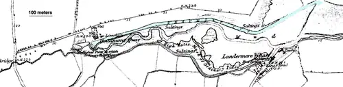 Archaeological studies suggest that the first canal on the site was built by the Romans, possibly in connection with salt extraction in the area; Roman-era pottery sherds have been found and sites of salterns identified.[2] The nineteenth-century canal was constructed to serve the extensive coastal traffic between the agricultural hinterland of Essex and London, with produce and animal fodder being carried into the capital and manure for the fields as cargo for the return trip. The proprietors of the venture were the governors of Guy’s Hospital, who owned agricultural estates in the area.[3] They were granted supplies of stone from Old London Bridge (demolished in 1831) for the purpose. Two vessels, the Thames barges Beaumont Belle and The Gleaner, both owned by the tenant of one of the estates, were initially based on the canal, but general trade was accepted.