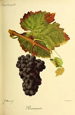 Beaunoir (French pronunciation: [bonwaʁ]) is a traditional French variety of red wine grape that is a sibling of Chardonnay. The 'beautiful black' grape produces a thin wine and not much is grown these days.