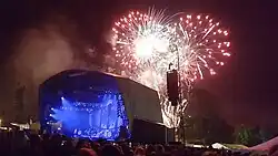 Beautiful Days has a more diverse range of musical artists than many other festivals.[7] Headline artists have included reggae (Lee "Scratch" Perry, The Wailers), alternative rock (James, Carter the Unstoppable Sex Machine), punk (The Stranglers, The Pogues), post-punk (Killing Joke, Public Image Ltd), country rock (Steve Earle), folk rock (Frank Turner), dance (Leftfield), gothic rock (The Sisters of Mercy) and blues (Seasick Steve). A number of acts from outside the US and UK which may be less familiar to festival crowds are booked each year; in recent years these have included Tinariwen (Mali), Seeed (Germany), Katzenjammer (Norway), Dubioza kolektiv (Bosnia) and Hoffmaestro (Sweden).[9] Traditionally, The Levellers open the festival with an acoustic set in the Big Top on Friday afternoon, and close it by headlining the main stage on Sunday, followed by a firework display.[10]