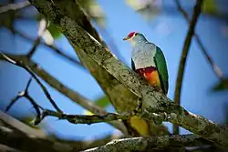 - ^ BirdLife International (2016). "Ptilinopus pulchellus". IUCN Red List of Threatened Species. 2016: e.T22691425A93312016. doi:10.2305/IUCN.UK.2016-3.RLTS.T22691425A93312016.en. Retrieved 11 November 2021.
