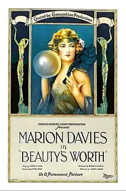 Beauty's Worth is a 1922 American romantic comedy drama film directed by Robert G. Vignola, starring Marion Davies as an unsophisticated Quaker who ventures to a seaside resort, meets a Bohemian artist, and falls in love.