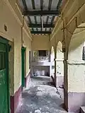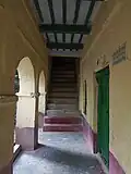 It is a two-storied building with an open central courtyard. There are long verandas in front of the boarding rooms.