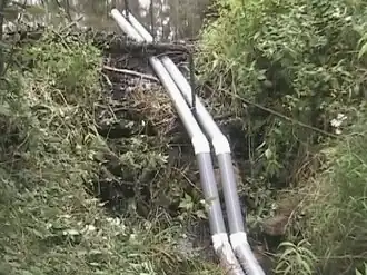 Beaver pipes are a non-destructive flow devices, a way of controlling beaver activity in an ecosystem. The process of building beaver pipes is quite simple, and often serves as a permanent way to prevent beavers from damming water.[1]