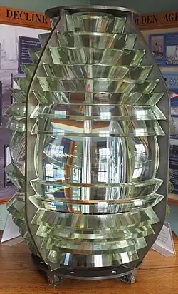 In 1856, the tower was replaced with the current tower, made of granite which is 10 ft (3.0 m) square and 64 feet (20 m) from ground to beacon. A 3rd order Fresnel lens was placed in service, and it was the site of numerous fog-signal tests over the next 40 years under the supervision of the United States Lighthouse Board. In 1898, quarters were added to the keeper's house for an assistant keeper; the assistant helped with fog-signaling, among other things.