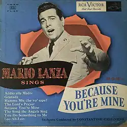 Mario Lanza Sings Songs from M-G-M's Technicolor Motion Picture "Because You're Mine", or simply Because You're Mine, is an album by tenor Mario Lanza containing songs from the 1952 Metro-Goldwyn-Mayer film Because You're Mine.[2][1]