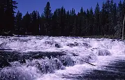 Bechler Falls ht. 15 feet (4.6 m) is a waterfall on the Bechler River in Yellowstone National Park. Bechler Falls is the last waterfall on the Bechler River and is approximately 1 mile (1.6 km) from the confluence with the Fall River. It can be reached via the Bechler River trail approximately 3.5 miles (5.6 km) from the Cave Falls trailhead at the south boundary of the park. The falls were named in 1921 by explorers E. C. Gregg and C.H. Birdseye.[2]