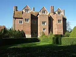 Built of dark red brick diapered with black headers and stone dressings, it is of two storeys plus cellars and attics. It is a narrow house, only one room thick, with the most prominent features being the three full-height, projecting gabled towers on the east, garden front, overlooking the former central moated island. The central tower contains the newel stair up the full height of the house, whilst the flanking towers contain garderobe flues. Each of the towers contains first-floor and attic-level windows overlooking the garden. Low extensions have been added to the south side of the house during the C20, that adjacent to the house enclosing a door at the south end of the east front which formerly led directly into the garden. A further door at the bottom of the central staircase tower, and offset from its centre, gives access to the garden. Both doors approached the garden via flights of stone steps.