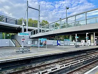 ![]() The eastbound platform and the roundabout above the station in 2021 | |