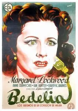 Bedelia is a 1946 British melodrama film directed by Lance Comfort and starring Margaret Lockwood, Ian Hunter and Barry K. Barnes.[3] It is an adaptation of the 1945 novel Bedelia by Vera Caspary with events relocated from the United States to Monaco and England.