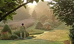 Scattered throughout the 20 developed acres (8.1 ha) are small and large pieces of sculpture by Jill Nooney, one of the co-founders. Nancy Grimes, the previous owner of New England Garden Ornaments in North Brookfield, called Nooney "the most imaginative and energetic force in modern American garden ornamentation."[7] Many of her sculptures are from old agricultural tools.[8]