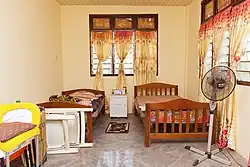 In larger Victorian houses it was common to have accessible from the bedroom a boudoir for the lady of the house and a dressing room for the gentleman.[3] Attic bedrooms exist in some houses; since they are only separated from the outside air by the roof they are typically cold in winter and may be too hot in summer. The slope of the rafters supporting a pitched roof also makes them inconvenient. In houses where servants were living in they often used attic bedrooms.