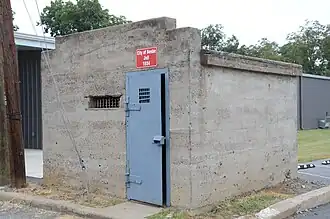 The Beebe Jail is a historic jail building in Beebe, Arkansas. The small single-story concrete structure is set on an alley south of East Illinois Street on the east side of North Main Street. It is distinctive for its slightly rounded concrete roof, with a parapet rising above the front (southwest) facade. The interior has two small cells, each with a barred window, and a small vestibule area. The jail was built as a Works Progress Administration project in 1934.[2]