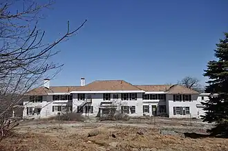 Beech Hill is located on a hilltop just north of the town center of Dublin, on the west side of New Harrisville Road. Sited prominently near the crest of the hill was the main house, a sprawling two-story structure whose main section was covered by a hip roof. Its exterior trim included corner pilasters and a dentillated cornice. The main block was extended by wings, including a more modern one that extended to one side of the swimming pool sited just east of the building.[3] The building was demolished in 2021 due to excessive vandalism and safety concerns.