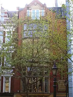 The Beefsteak became an essential after-theatre club for such men as the dramatists F. C. Burnand and W. S. Gilbert,[n 3] performers Corney Grain, J. L. Toole, John Hare, Henry Irving and W. H. Kendal, and theatre managers and writers Henry Labouchère and Bram Stoker,[n 4] and their peers.[37] Restaurant critic Nathaniel Newnham-Davis was also a member around the turn of the 20th century. The club moved to Green Street, in Mayfair,[36] and, in 1896, to its present address. There were 250 members,[38] some of whom occasionally performed amateur plays for their own amusement and to raise funds for charities. For example, in 1878, they performed The Forty Thieves, written by members Robert Reece, Gilbert, Burnand, and Henry J. Byron.[39] In 1879 there was a much-reported court case following a fracas on the doorstep of the club between Labouchère and Edward Levy-Lawson, proprietor of The Daily Telegraph. The committee of the club expelled Labouchère, who successfully sought a court ruling that they had no right to do so.[38]