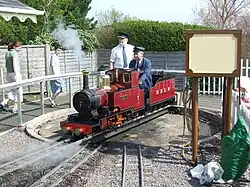 The railway currently has eight steam locomotives, two diesel and one electric.[9] A locomotive called 'Finn MacCool' also visits every summer (usually July – September) from the Belfast and County Down Miniature Railway Society, Northern Ireland, to help out in the peak season.[10] Other locomotives also visit during the 'Loco Week' and 'Bank Holiday Weekend Gala' in August. A list of locomotives currently in use is below:[11]