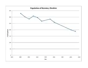 The overall trend for in Beeston has been that the population has declined since the 1881 census, with approximately 188 people living in the village in 2011.[7] This is despite the overall number of households in the parish increasing.[8]