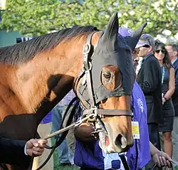 ![]() Beholder in the walking ring for the 2016 Breeders' Cup Distaff | |