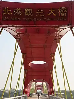 The Beigang Tourist Bridge (traditional Chinese: 北港觀光大橋; simplified Chinese: 北港观光大桥; pinyin: Běigǎng Guānguāng Dàqiáo) is a footbridge in Lioujiao Township, Chiayi County and Beigang Township, Yunlin County in Taiwan.[1] The bridge crosses over Beigang River.