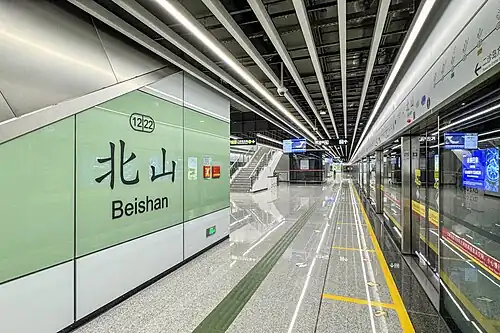 Beishan station (Chinese: 北山站; pinyin: Běishān Zhàn; Cantonese Yale: Bāksāan Jaahm) is a station on Line 12 of the Guangzhou Metro. It is located underground on the southeast side of the intersection of Xinjiao East Road and Keyuan South Road in Haizhu District of Guangzhou. It opened on 29 June 2025.[1]