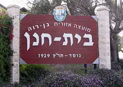 Beit Hanan founded during the Hanukkah holiday of 1929 by Jewish immigrants from Bulgaria, Beit Hanan was the first Jewish agricultural community to be established after the 1929 Palestine riots. The name is taken from the Bible, specifically (1 Kings 4:9).[2] According to a census conducted in 1931 by the British Mandate authorities, Beit Hanan had a population of 178 inhabitants, in 50 houses.[3]