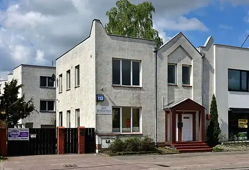 The Beit Warszawa Synagogue (Polish: Synagoga „Beit Warszawa”) is a Reform Jewish congregation and synagogue, located at 113 Wiertnicza Street, in the district of Wilanów, Warsaw, in the Masovian Voivodeship of Poland. Designed in the Modernist style and completed in 2003, the synagogue has regular events, including Friday night and Saturday morning prayers. Beit Warszawa is a member of Beit Polska, the umbrella organization for the Progressive and Reform Jewish community in Poland.