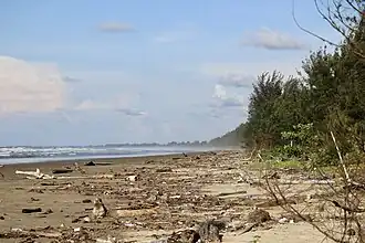 Offshore platforms from the South West Ampa Field can also be seen in distance from the beach.[5] Seawalls have been built along the coastline in order to reduce erosion.[6] Activities such as surf fishing do take place on the beach.[7]