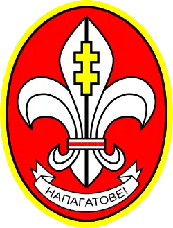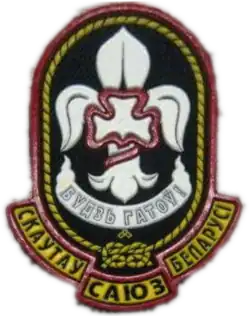 The Scout emblem incorporates the Cross of Lorraine, due to its appearance in the former national coat of arms of Belarus, the Pahonia.