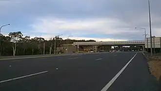 Along with Barry Drive, Belconnen Way was constructed in stages between 1965 and 1971 as a single carriageway road. It was progressively duplicated as the district's traffic and population grew.[1] A connection to Gungahlin Drive forms the largest signalised and overpass intersection in Canberra, constructed during the Gungahlin Drive Extension works and opening in 2011.