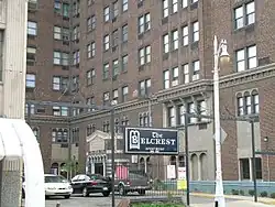 The Belcrest Apartment Hotel was built in 1926 as a residential hotel, catering to wealthy tenants.[4] The building exemplified what was, at the time, a novel style of living arrangement: an apartment building that offered amenities normally associated with a hotel.[4] Daily maid service and a restaurant on the premises set this apart from a conventional apartment building. The building was developed by Jacob Singer and Max Hamburger, who hired Charles N. Agree as both architect and general contractor for the building. In 1929, Singer and Hamburger signed an agreement to make the Belcrest a part of the Albert Pick hotel chain. The property was purchased by Detroit-based developer, Holcomb Development Company, in Fall of 2022 and a full renovation of all 140 units has been completed .[3]