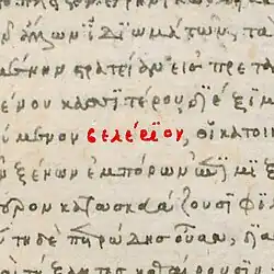 ![]() Belerion (Βελέριον) as it appears in Laurentianus Plut-70-1 (f.184v); a prototype manuscript of Diodorus' Bibliotheca Historica (c.1330). | |