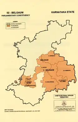 | Assembly constituencies | Arabhavi Gokak Belgaum Uttar Belgaum Dakshin Belgaum Rural Bailahongal Saundatti Yellamma Ramdurg |
