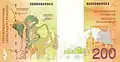 In 1944, following liberation, new banknotes were introduced (dated 1943 and printed in the United Kingdom) in denominations of 5, 10, 100, 500 and 1000 francs (1, 2, 20, 100 and 200 belgas). These were the last notes to bear denominations in belgas. Treasury notes for 50 francs were introduced in 1948, followed by 20 francs in 1950, whilst the National Bank continued to issue 100, 500 and 1000 francs. 5000 franc banknotes were introduced in 1971, with the 20 and 50 franc treasury notes replaced by coins in 1980 and 1987, respectively. 10,000 franc banknotes were introduced in 1992, the same year that production of the 5000 franc note ceased. 2000 franc notes were introduced in 1994, with 200-franc notes issued in 1996.[7] While previous issues of Belgian notes were bilingual, starting with the 10000-franc notes in 1992, Belgian franc banknotes became trilingual, with the language appearing on the obverse being the main language spoken by the subject (French or Dutch) and the other two official languages (including German) on the reverse.