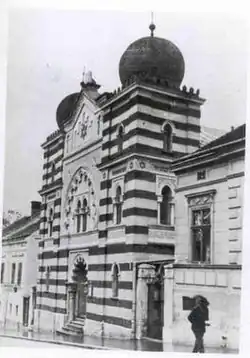 The Belgrade Synagogue (Serbian: Београдска синагога, romanized: Beogradska sinagoga), officially the Sukkat Shalom Synagogue (Serbian: Синагога „Сукат Шалом”, romanized: Sinagoga „Sukat Šalom”), is an Orthodox Jewish congregation and synagogue, located in central Belgrade, near Obilićev Venac Square and central high street Knez Mihailova, in Serbia.
