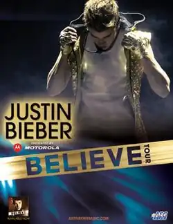 The Believe Tour was the second concert tour by Canadian singer Justin Bieber. It was launched in support of his third studio album, Believe (2012).[2] Beginning in September 2012, the tour played over 150 shows in the Americas, Europe, Asia, Africa, and Oceania.