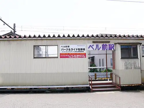 Bell-mae Station (ベル前駅, Bellmae-eki) is a railway station on the Fukui Railway Fukubu Line operated by Fukui Railway in Fukui, Fukui Prefecture, Japan. The station is numbered F16.