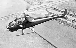 First flown on 27 June 1963, the Bell 207 demonstrated improved manoeuvrability over the Bell 47/OH-13, derived from the stub wings. A variety of different wings, cowlings and tail surfaces were tested on the 207 before it was turned over to the Army pilots at Fort Benning, Georgia for further testing at the end of 1963.[2][6][7] After evaluating the Sioux Scout in early 1964, the Army was impressed, but also felt the Sioux Scout was undersized, underpowered, and generally not suited for practical use.[3]