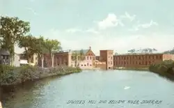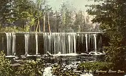 Further along is the final dam, at the site of the former Sawyer Woolen Mills, a large manufacturer in Dover during the late 19th century and early 20th century. The river supplied the power to this large factory.