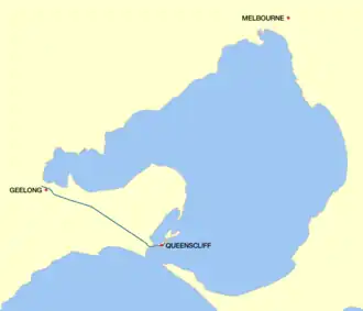 Bellarine Highway is a main arterial highway that runs east from Geelong in Victoria along the Bellarine Peninsula to Queenscliff.[4] The highway also provides the main route to Barwon Heads and Ocean Grove, localities along the southern coast of the peninsula.