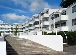 The Bellavista housing estate designed by Arne Jacobsen is the clearest example of Bauhaus architecture in Denmark.[1] Completed in 1934, the estate is located just north of Copenhagen, in Klampenborg, Gentofte Municipality, next to Jacobsen's Bellevue Beach, which had been completed a couple of years earlier.[1]