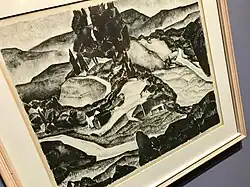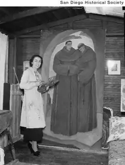 She painted an oil-on canvas-mural in the La Jolla post office (Scenic View of the Village) in 1936 for the Section of Painting and Sculpture.[6] As a muralist for the Works Progress Administration curriculum project, she painted murals for Roosevelt Junior High School (Building Padre Dam and Potola's Departure) in 1937–38.[7] Between 1939 and 1940 she completed a WPA mural titled The Seven Arts in the La Jolla High School Auditorium.[4][7]