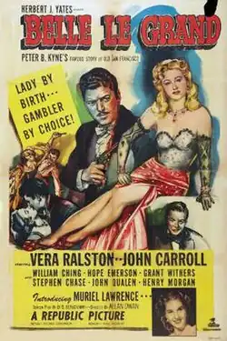 Belle Le Grand is a 1951 American Western film directed by Allan Dwan and written by D.D. Beauchamp. The film stars Vera Ralston, John Carroll, William Ching, Hope Emerson, Grant Withers, Stephen Chase, John Qualen and Harry Morgan. The film was released on January 27, 1951, by Republic Pictures.[1][2][3]