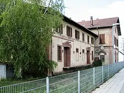 The former entrance building was built around 1870 as a so-called "standard building" in brick. It was built in the period when the station was opened and is under heritage protection.[15] It is no longer used for railway operations.