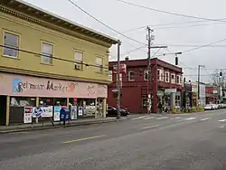 The area developed around the first trolley line in East Portland, established in 1888 (and converted to a bus line in 1949).