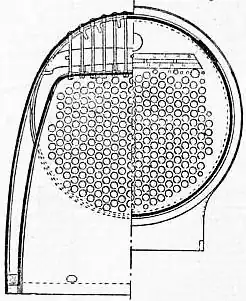 The flat firebox top would make supporting it against pressure more difficult (e.g. by means of girders, or stays) compared to a round-top. However, the use of a similarly shaped square outer boiler shell allows simpler perpendicular stays to be used between the shells.[1] The Belpaire outer firebox is, nevertheless, more complicated and expensive to manufacture than a round-top version.