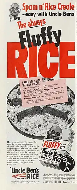 Ben's Original, formerly called Uncle Ben's, is an American brand of parboiled rice and other related food products that were introduced by Converted Rice Inc., which is now owned by Mars, Inc. Uncle Ben's rice was first marketed in 1943 and was the top-selling rice in the United States until the 1990s.[1] In 2020, it was rebranded as "Ben's Original".[2][3]