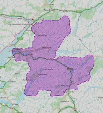 Although named after Ben Nevis and Glen Coe, the national scenic area covers a much wider area of land, as detailed below.[3] Much of the northern part of the NSA lies within the Lochaber region.